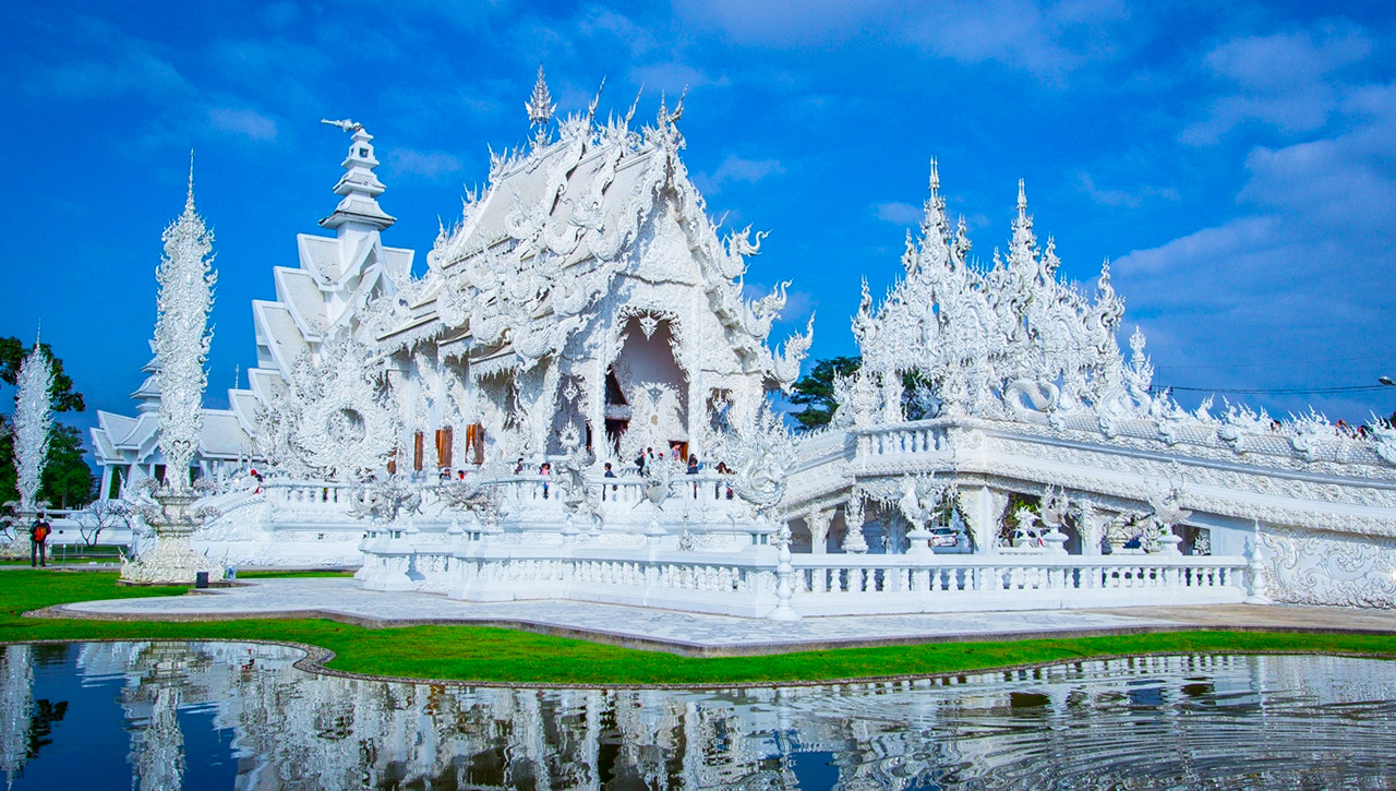 08.30 น. เช็คเอ้าท์จากโรงแรมที่พัก นำท่านเดินทางสู่ วัดร่องขุ่น ได้รับการบูรณะออกแบบและก่อสร้างโดยอาจารย์เฉลิมชัย โฆษิตพิพัฒน์ จากวัดเล็กๆ ซึ่งอยู่ในสภาพค่อนข้างเสื่อมโทรมนี้ได้กลายเป็นศาสนสถานที่สวยงามด้วยสถาปัตยกรรมและงานศิลปะเต็มไปด้วยลวดลายอ่อนช้อยประณีตดึงดูดนักท่องเที่ยวให้มาเยี่ยมชมวัดนี้อย่างคับคั่งตลอดปี ซึ่งอาจารย์เฉลิมชัยปรารถนาจะสร้างวัดให้เหมือนเมืองสวรรค์ที่มนุษย์สัมผัสได้ อุโบสถ ประดับกระจกสีเงินแวววาววิจิตรงดงามแปลกตา ภายในอุโบสถมีภาพจิตรกรรมฝาผนัง โดยเฉพาะภาพพระพุทธองค์หลังพระประธานซึ่งเป็นภาพที่ใหญ่งดงามมาก